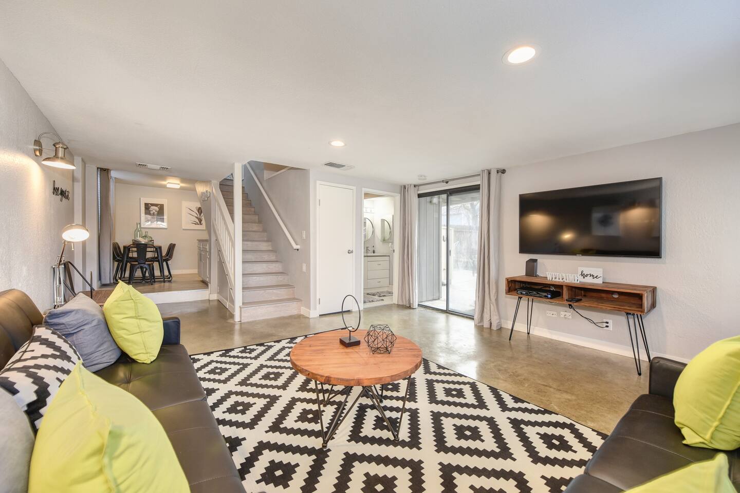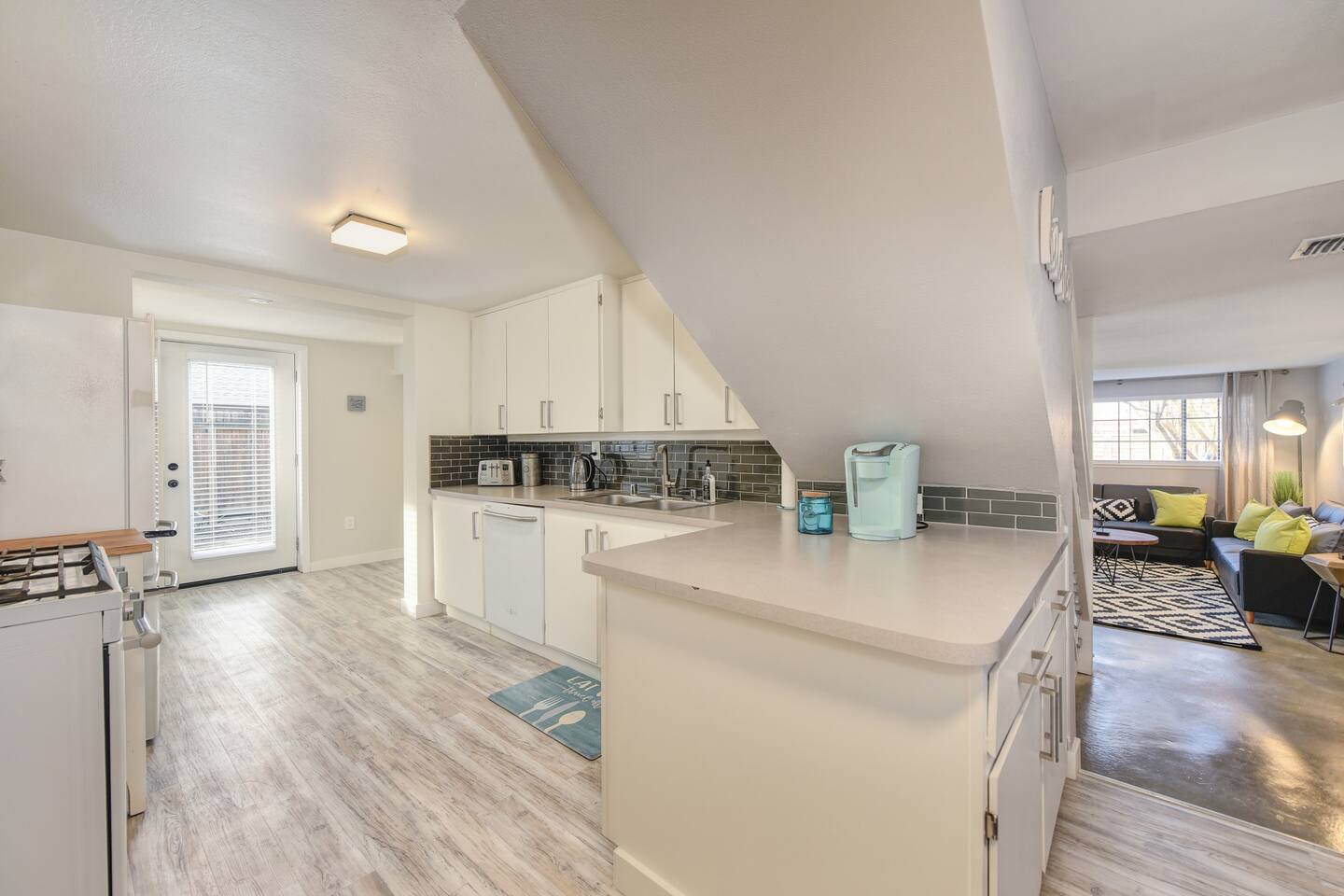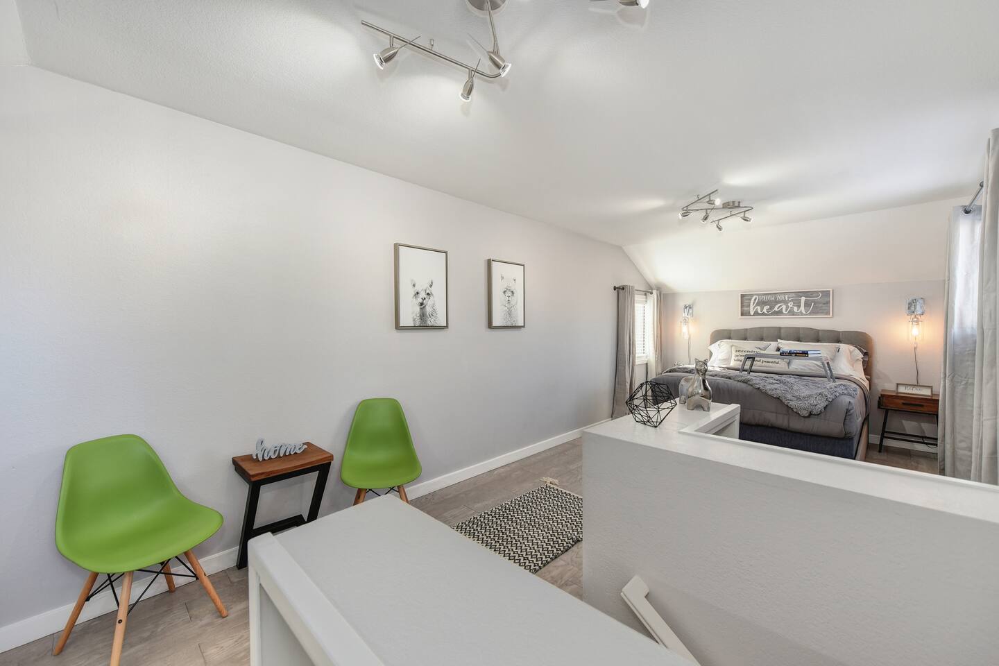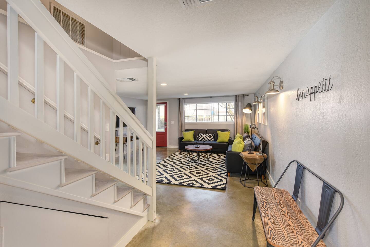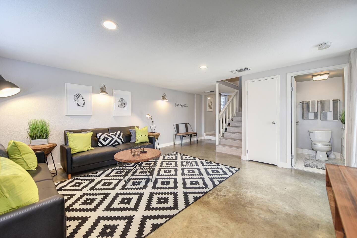 A beautifully designed home and luxurious grounds in a community that's fun and convenient to shopping, entertainment, and fine dining. The Downtown ALHAMBRA HOUSE luxury home futures: - Brand new custom tile in bathroom, wood floors in kitchen and Loft bedroom and shiny modern concrete floors in living room. - LOFT bedroom with queen bed, brand new luxury Simmons Plush Beautyrest mattress - (Sleeps 2) and a cosy seating area, including 42" Flat Screen SMART TV, large closet and additional storage area. - Beautiful bathroom downstairs with custom tile throughout, custom tiled walk-in shower, custom vanity and a toilet area - Contemporary kitchen, fully stocked and set-up with high end appliances and custom tile backsplash. - A cozy dining area with comfortable furnishings (seating 6) - Open concept floor plan Living area with two large new leather sofa-sleepers, (a Queen size sleeps 2 guest, and a Twin size sleeps 1 guest, total of 3 guests) and a 58'' Flat Screen SMART HDTV - Stunning fully fenced back yard patio area with barbecue, lovely seating area and a comfy hammock - Gorgeous oversized fully fenced front yard with plenty of parking and a private driveway - Brand new laundry area with high end front loader Washer and Drier - Private enclosed driveway-parking area *NOTE. We take great pleasure in regularly updating and enhancing our property. This includes incorporating new decorations, throw pillows and blankets, furniture, and bedding, and refreshing the color scheme. Consequently, the current setup may not exactly match the images featured in the listing. However, we guarantee that all necessary amenities are provided to ensure your stay is enjoyable and comfortable.