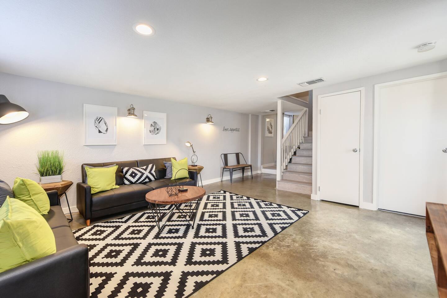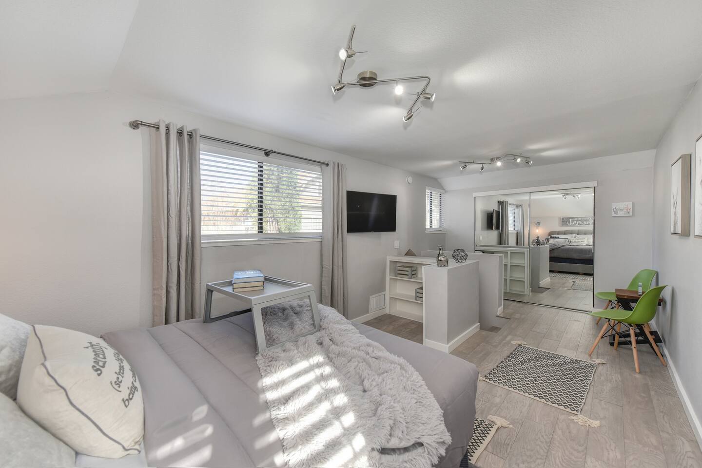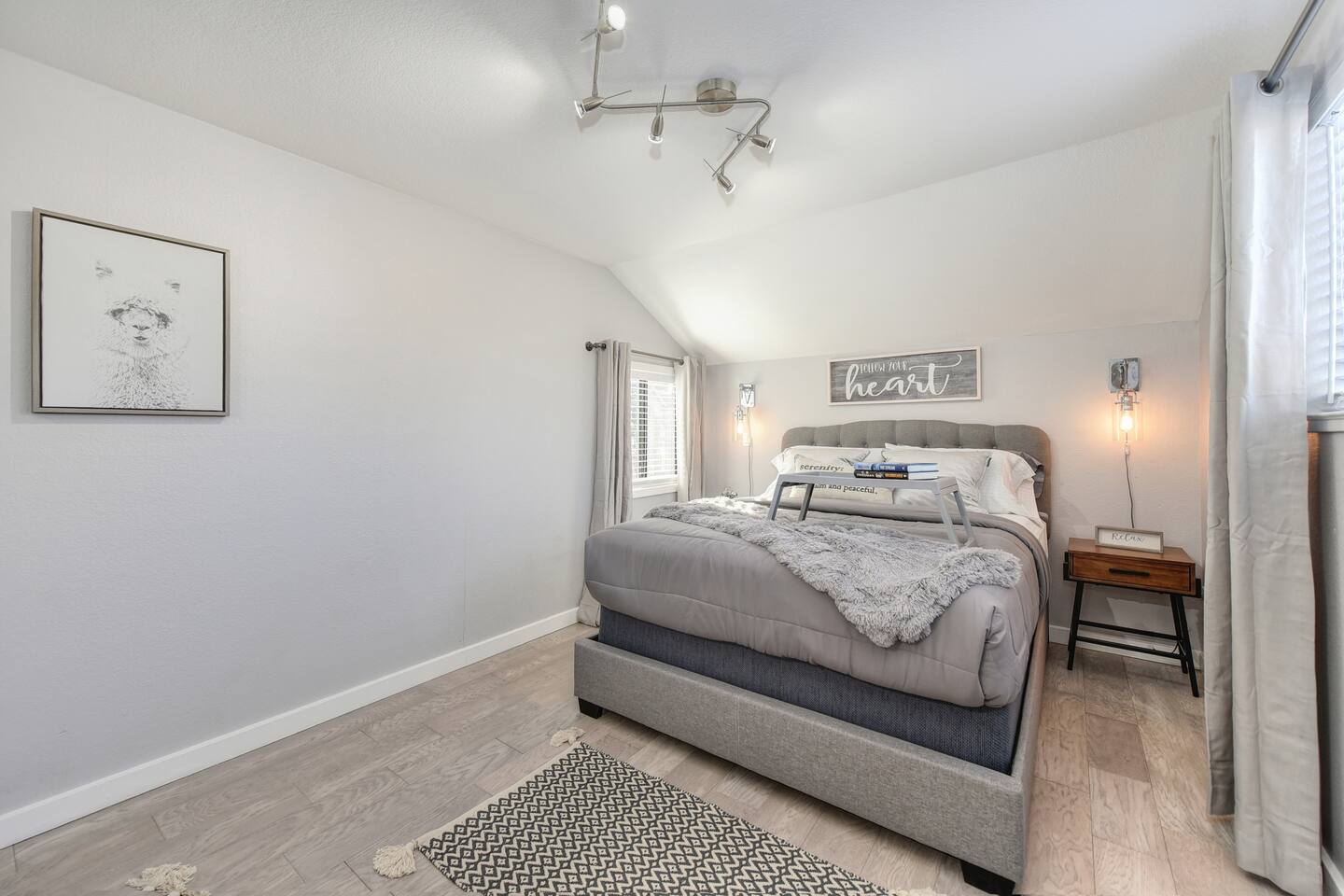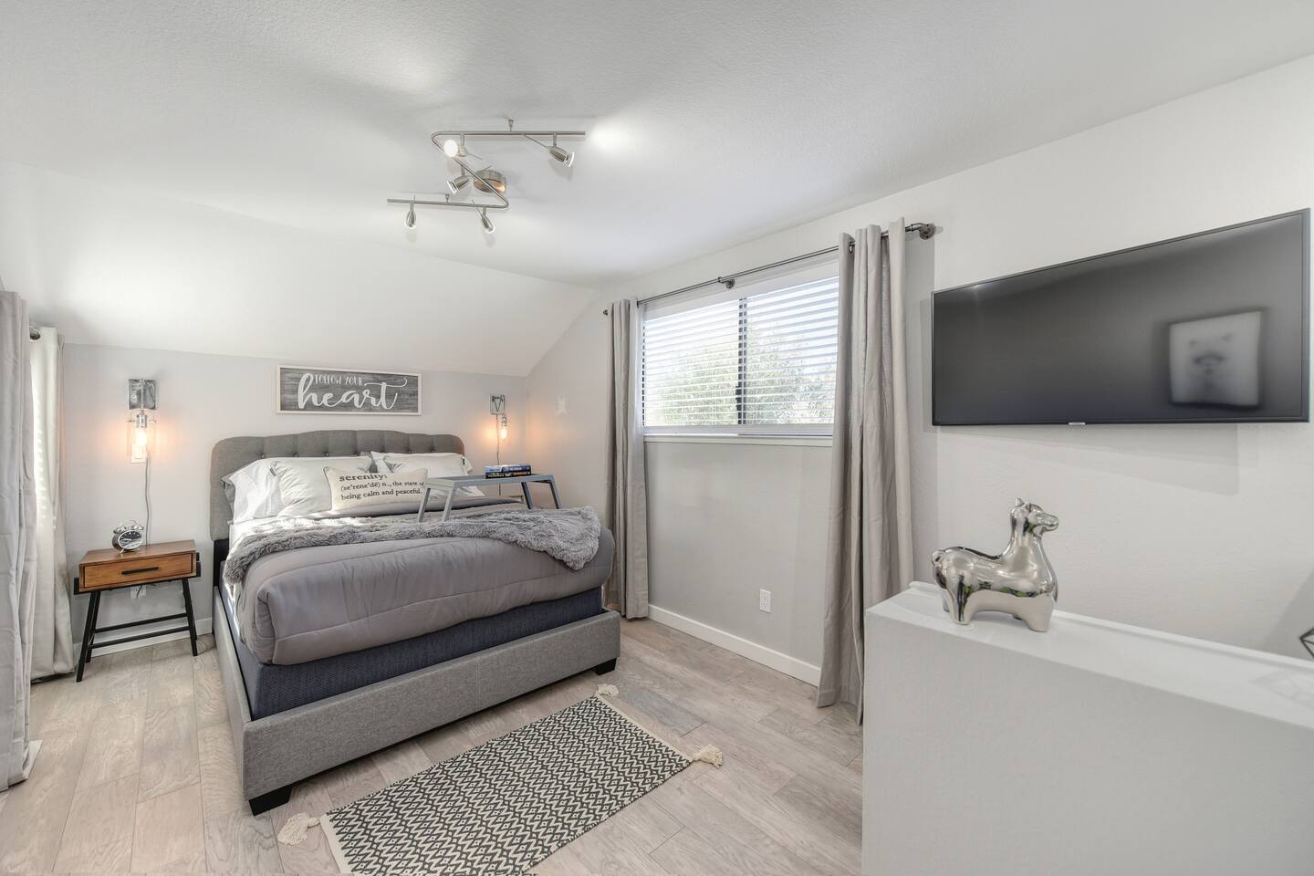 A beautifully designed home and luxurious grounds in a community that's fun and convenient to shopping, entertainment, and fine dining. The Downtown ALHAMBRA HOUSE luxury home futures: - Brand new custom tile in bathroom, wood floors in kitchen and Loft bedroom and shiny modern concrete floors in living room. - LOFT bedroom with queen bed, brand new luxury Simmons Plush Beautyrest mattress - (Sleeps 2) and a cosy seating area, including 42" Flat Screen SMART TV, large closet and additional storage area. - Beautiful bathroom downstairs with custom tile throughout, custom tiled walk-in shower, custom vanity and a toilet area - Contemporary kitchen, fully stocked and set-up with high end appliances and custom tile backsplash. - A cozy dining area with comfortable furnishings (seating 6) - Open concept floor plan Living area with two large new leather sofa-sleepers, (a Queen size sleeps 2 guest, and a Twin size sleeps 1 guest, total of 3 guests) and a 58'' Flat Screen SMART HDTV - Stunning fully fenced back yard patio area with barbecue, lovely seating area and a comfy hammock - Gorgeous oversized fully fenced front yard with plenty of parking and a private driveway - Brand new laundry area with high end front loader Washer and Drier - Private enclosed driveway-parking area *NOTE. We take great pleasure in regularly updating and enhancing our property. This includes incorporating new decorations, throw pillows and blankets, furniture, and bedding, and refreshing the color scheme. Consequently, the current setup may not exactly match the images featured in the listing. However, we guarantee that all necessary amenities are provided to ensure your stay is enjoyable and comfortable.