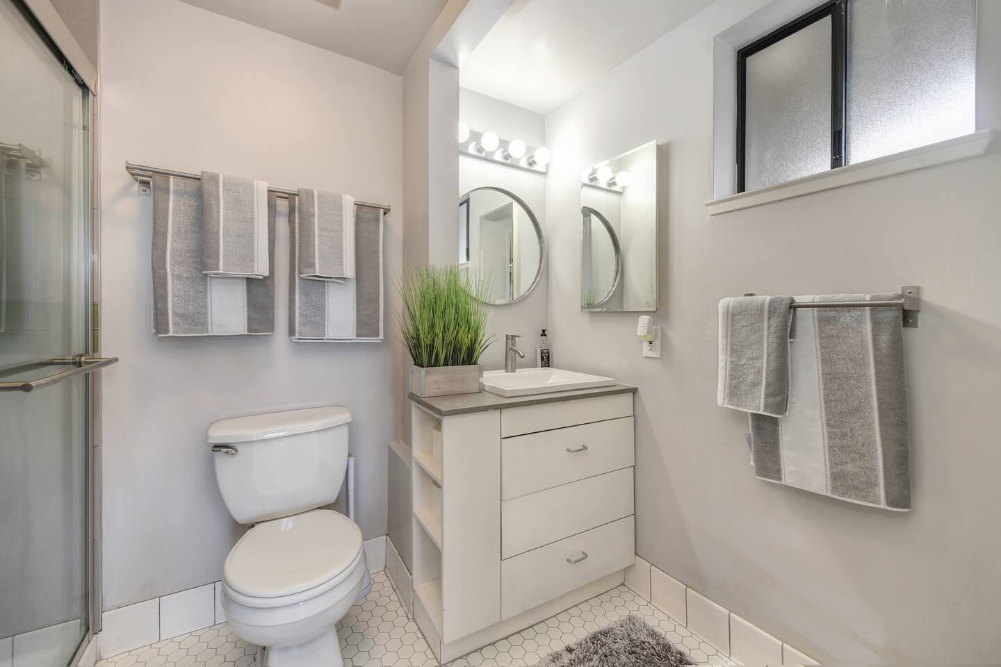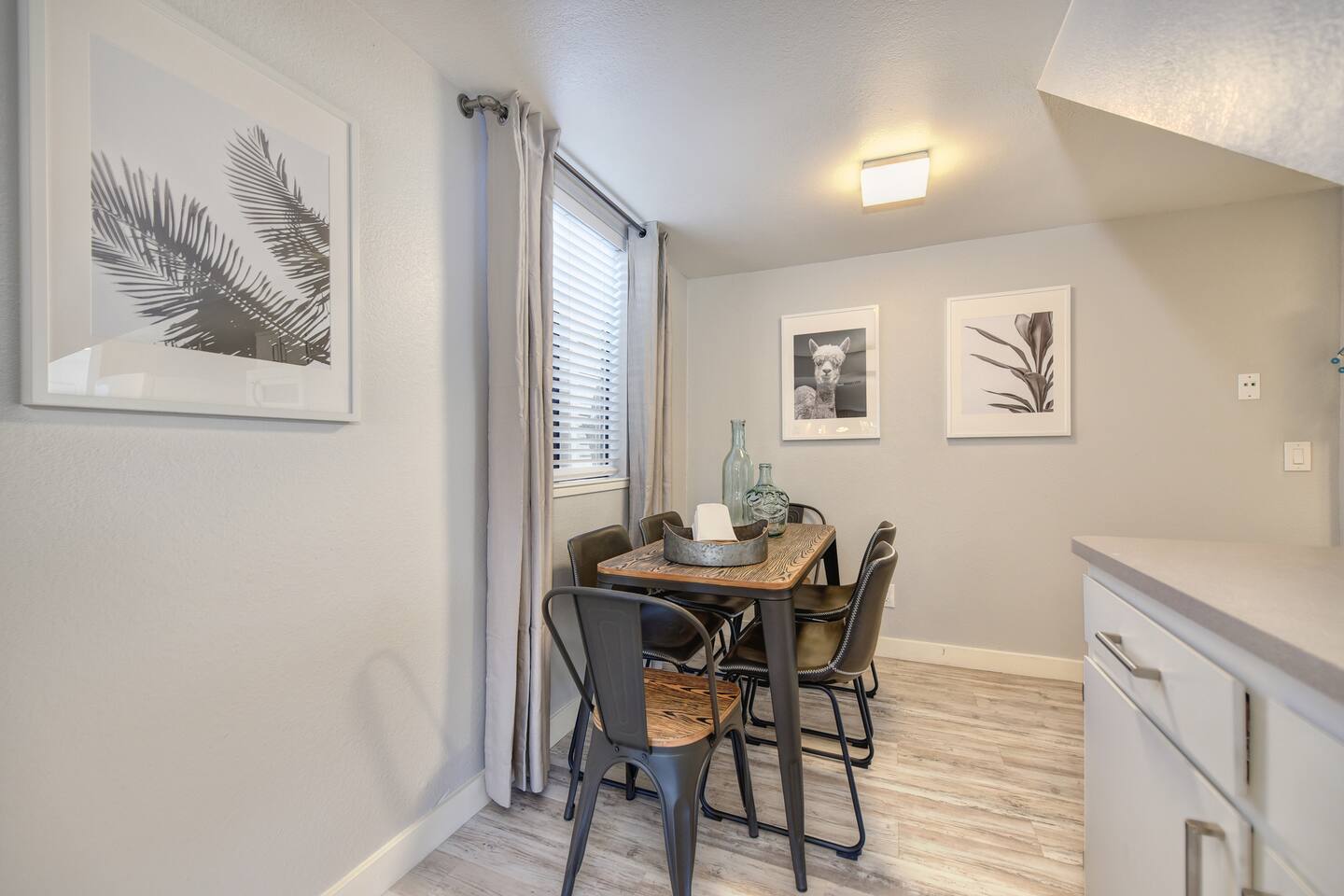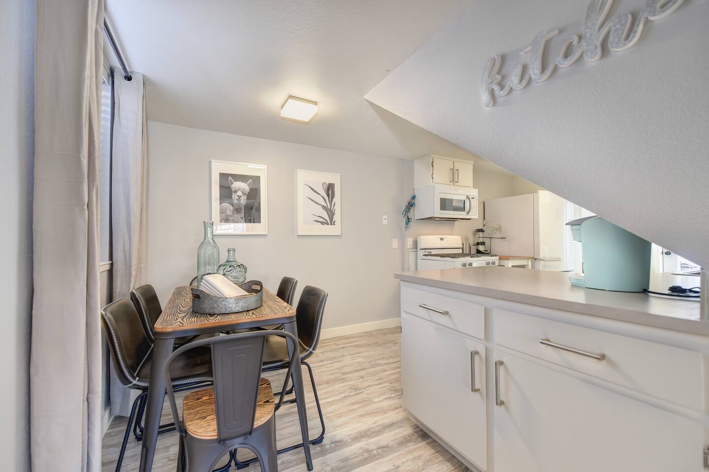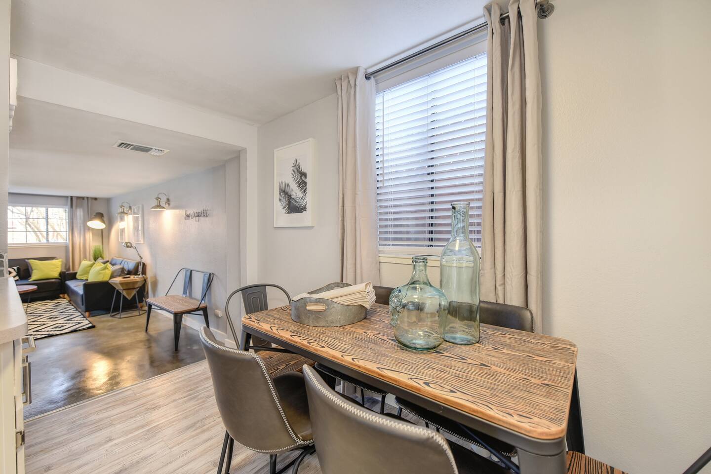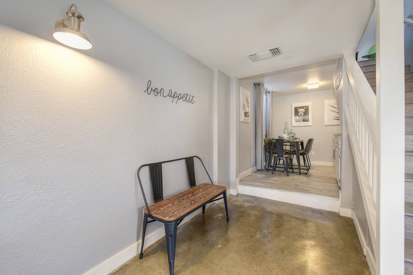 A beautifully designed home and luxurious grounds in a community that's fun and convenient to shopping, entertainment, and fine dining. The Downtown ALHAMBRA HOUSE luxury home futures: - Brand new custom tile in bathroom, wood floors in kitchen and Loft bedroom and shiny modern concrete floors in living room. - LOFT bedroom with queen bed, brand new luxury Simmons Plush Beautyrest mattress - (Sleeps 2) and a cosy seating area, including 42" Flat Screen SMART TV, large closet and additional storage area. - Beautiful bathroom downstairs with custom tile throughout, custom tiled walk-in shower, custom vanity and a toilet area - Contemporary kitchen, fully stocked and set-up with high end appliances and custom tile backsplash. - A cozy dining area with comfortable furnishings (seating 6) - Open concept floor plan Living area with two large new leather sofa-sleepers, (a Queen size sleeps 2 guest, and a Twin size sleeps 1 guest, total of 3 guests) and a 58'' Flat Screen SMART HDTV - Stunning fully fenced back yard patio area with barbecue, lovely seating area and a comfy hammock - Gorgeous oversized fully fenced front yard with plenty of parking and a private driveway - Brand new laundry area with high end front loader Washer and Drier - Private enclosed driveway-parking area *NOTE. We take great pleasure in regularly updating and enhancing our property. This includes incorporating new decorations, throw pillows and blankets, furniture, and bedding, and refreshing the color scheme. Consequently, the current setup may not exactly match the images featured in the listing. However, we guarantee that all necessary amenities are provided to ensure your stay is enjoyable and comfortable.