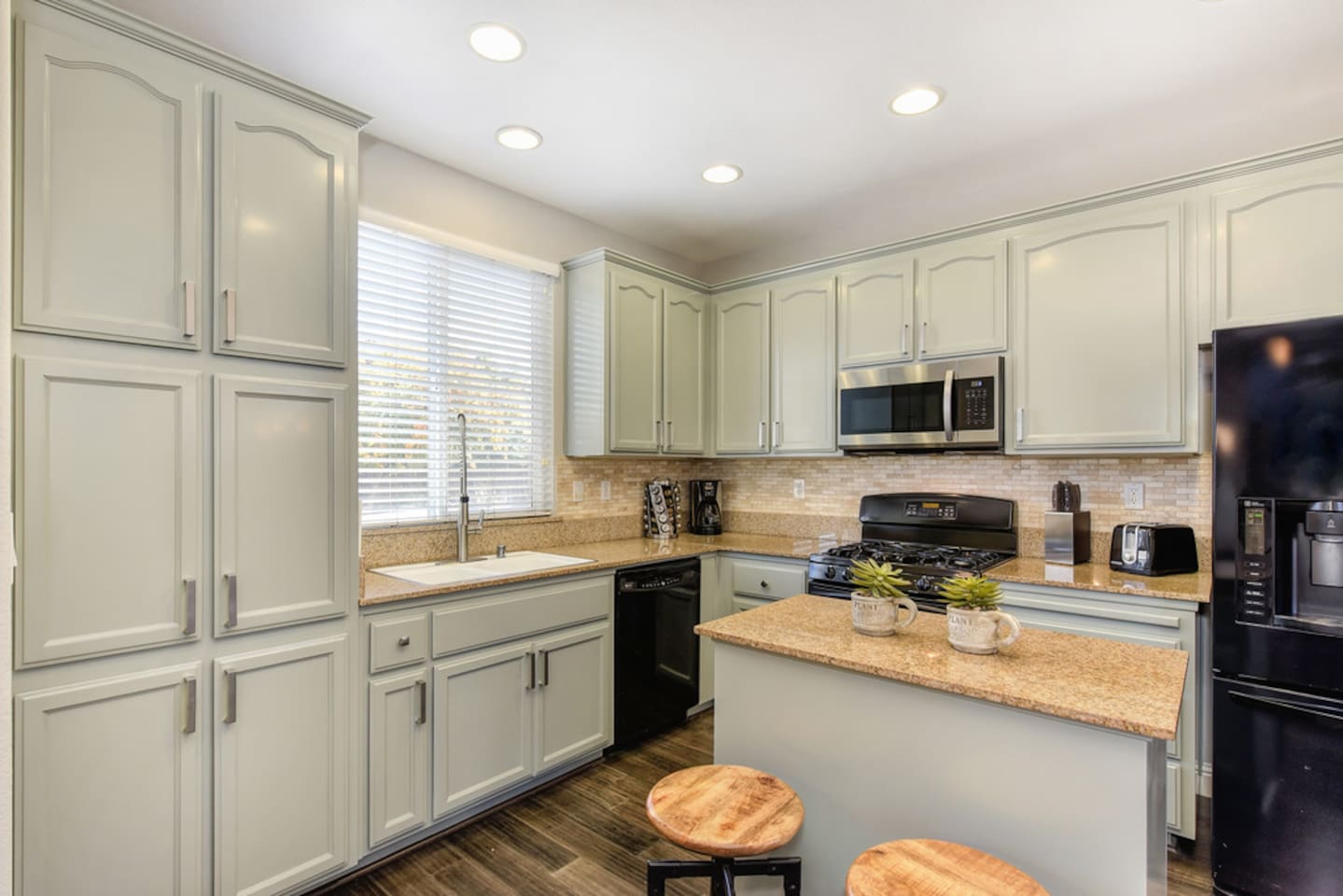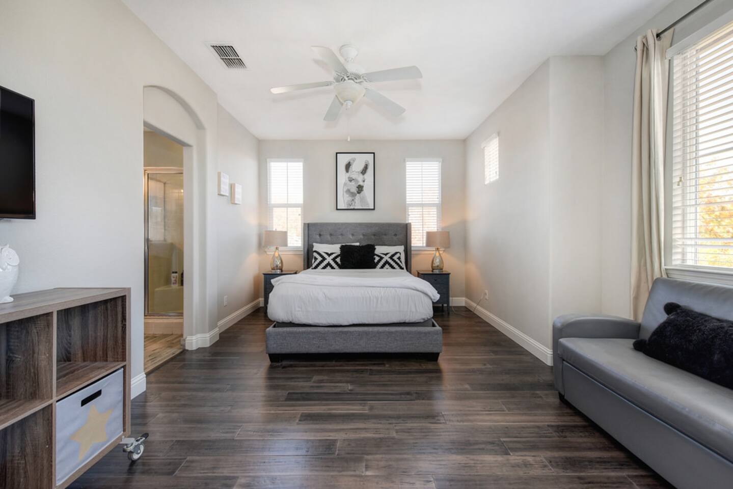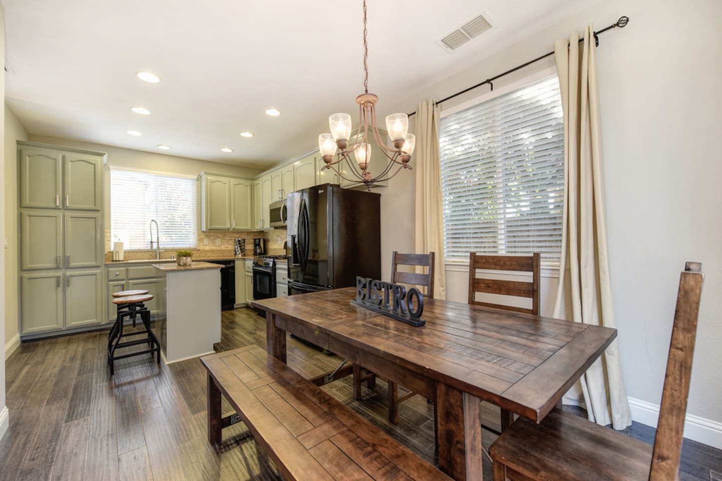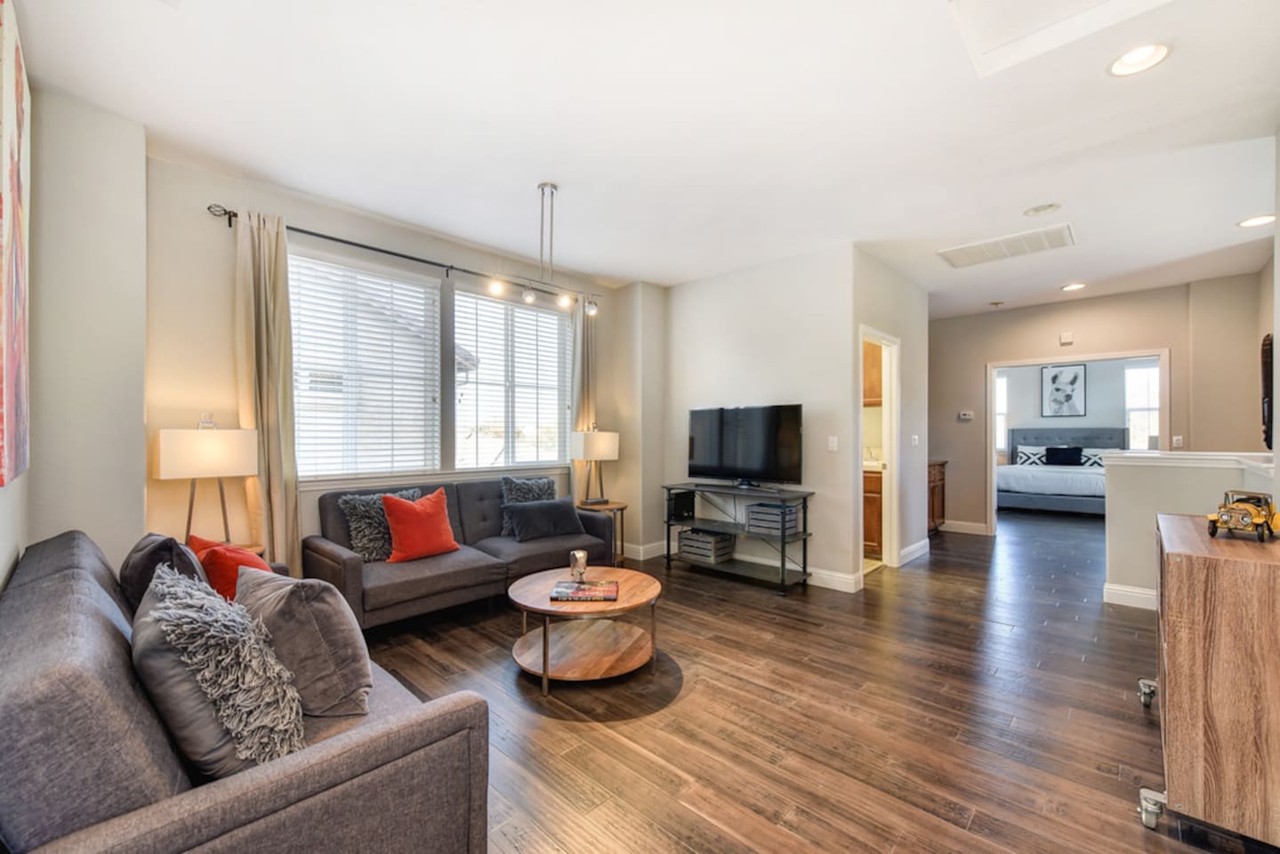 A spacious home and luxurious grounds in a community that's fun and convenient to shopping, entertainment, and fine dining. The two story luxury home futures: - Brand new custom solid wood floors throughout the house. - Master bedroom with queen bed, brand new luxury Simmons Plush Beautyrest mattress and luxury twin size convertible sofa bed with memory foam mattress - 45'' SMART TV, large walk in closet - Brand new master bathroom with custom tile throughout, over-sized bath tub, walk-in shower, double vanitiy/sinks and a separate toilet area - Second bedroom with queen bed, brand new Simmons Plush Beautyrest mattress - Third bedroom with queen bed, brand new Simmons Plush Beautyrest mattress - Brand new second bathroom with custom tile throughout, double vanitiy/sinks, separate toilet area and a soaking tub - Separate LARGE Loft area convertible sofa beds and a 50" SMART TV - Contemporary gourmet kitchen, fully stocked and set-up with high end appliances, custom tile backsplash, breakfast island and a dining area with high end furnishings (seating 6) - Open floor plan Living area with large brand new top grain leather sofa and a love seat. 55" Flat Screen Plasma SMART TV, Beautiful fireplace and additional dining area with high end custom table and chairs - Fabulous back yard newly furnished for your morning coffee and evening wine tastings with a Beautiful Gazebo and luxury soft cushions conversation set for your outdoor leisure (not shown on photos) - Separate laundry room with Washer and Drier - Attached Garage for 2 cars - Guest parking - All Bedrooms are located at the second floor REVIEWS: ⭐"Teya was a great host. The place matched the description. We all slept very well those 4 nights." ⭐"The host was kind enough to upgrade us to this house (bigger!). This house is extremely spacious, has an enclosed backyard with both concrete patio and grass areas, and a full kitchen which we used to cook dinner every night. I especially appreciate that the house was dog friendly *NOTE. We take great pleasure in regularly updating and enhancing our property. This includes incorporating new decorations, throw pillows and blankets, furniture, and bedding, and refreshing the color scheme. Consequently, the current setup may not exactly match the images featured in the listing. However, we guarantee that all necessary amenities are provided to ensure your stay is enjoyable and comfortable.