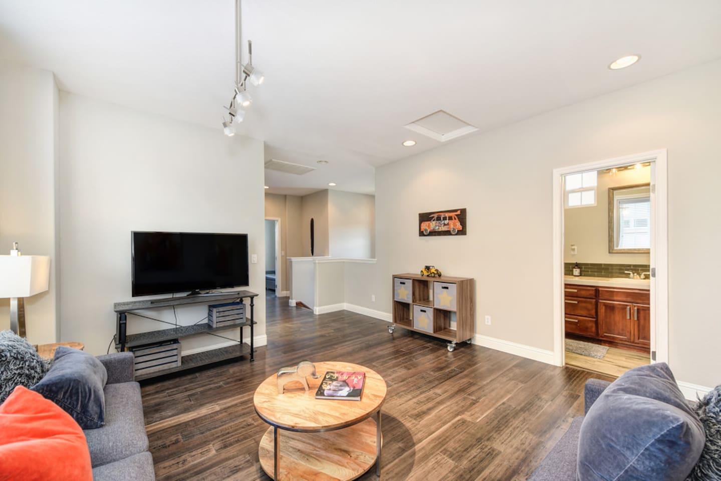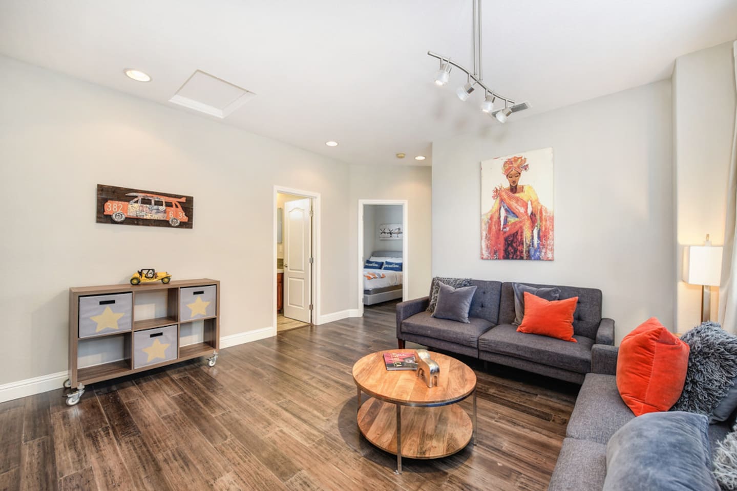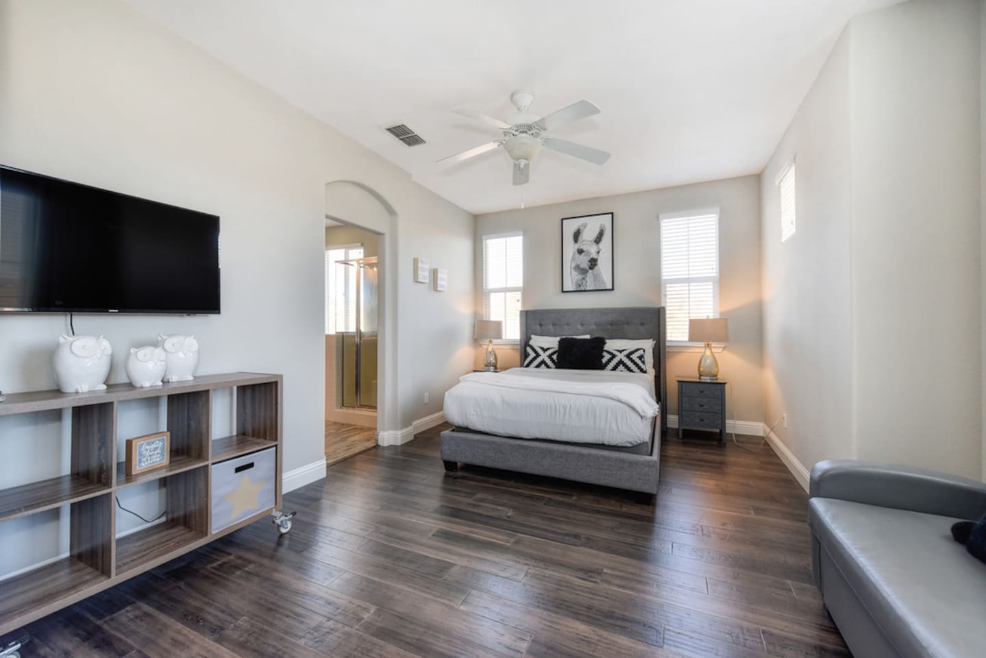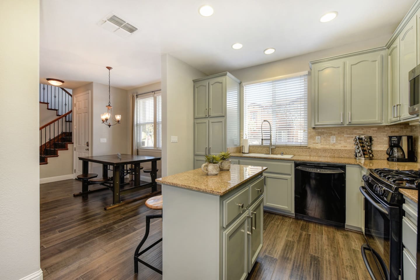 A spacious home and luxurious grounds in a community that's fun and convenient to shopping, entertainment, and fine dining. The two story luxury home futures: - Brand new custom solid wood floors throughout the house. - Master bedroom with queen bed, brand new luxury Simmons Plush Beautyrest mattress and luxury twin size convertible sofa bed with memory foam mattress - 45'' SMART TV, large walk in closet - Brand new master bathroom with custom tile throughout, over-sized bath tub, walk-in shower, double vanitiy/sinks and a separate toilet area - Second bedroom with queen bed, brand new Simmons Plush Beautyrest mattress - Third bedroom with queen bed, brand new Simmons Plush Beautyrest mattress - Brand new second bathroom with custom tile throughout, double vanitiy/sinks, separate toilet area and a soaking tub - Separate LARGE Loft area convertible sofa beds and a 50" SMART TV - Contemporary gourmet kitchen, fully stocked and set-up with high end appliances, custom tile backsplash, breakfast island and a dining area with high end furnishings (seating 6) - Open floor plan Living area with large brand new top grain leather sofa and a love seat. 55" Flat Screen Plasma SMART TV, Beautiful fireplace and additional dining area with high end custom table and chairs - Fabulous back yard newly furnished for your morning coffee and evening wine tastings with a Beautiful Gazebo and luxury soft cushions conversation set for your outdoor leisure (not shown on photos) - Separate laundry room with Washer and Drier - Attached Garage for 2 cars - Guest parking - All Bedrooms are located at the second floor REVIEWS: ⭐"Teya was a great host. The place matched the description. We all slept very well those 4 nights." ⭐"The host was kind enough to upgrade us to this house (bigger!). This house is extremely spacious, has an enclosed backyard with both concrete patio and grass areas, and a full kitchen which we used to cook dinner every night. I especially appreciate that the house was dog friendly *NOTE. We take great pleasure in regularly updating and enhancing our property. This includes incorporating new decorations, throw pillows and blankets, furniture, and bedding, and refreshing the color scheme. Consequently, the current setup may not exactly match the images featured in the listing. However, we guarantee that all necessary amenities are provided to ensure your stay is enjoyable and comfortable.