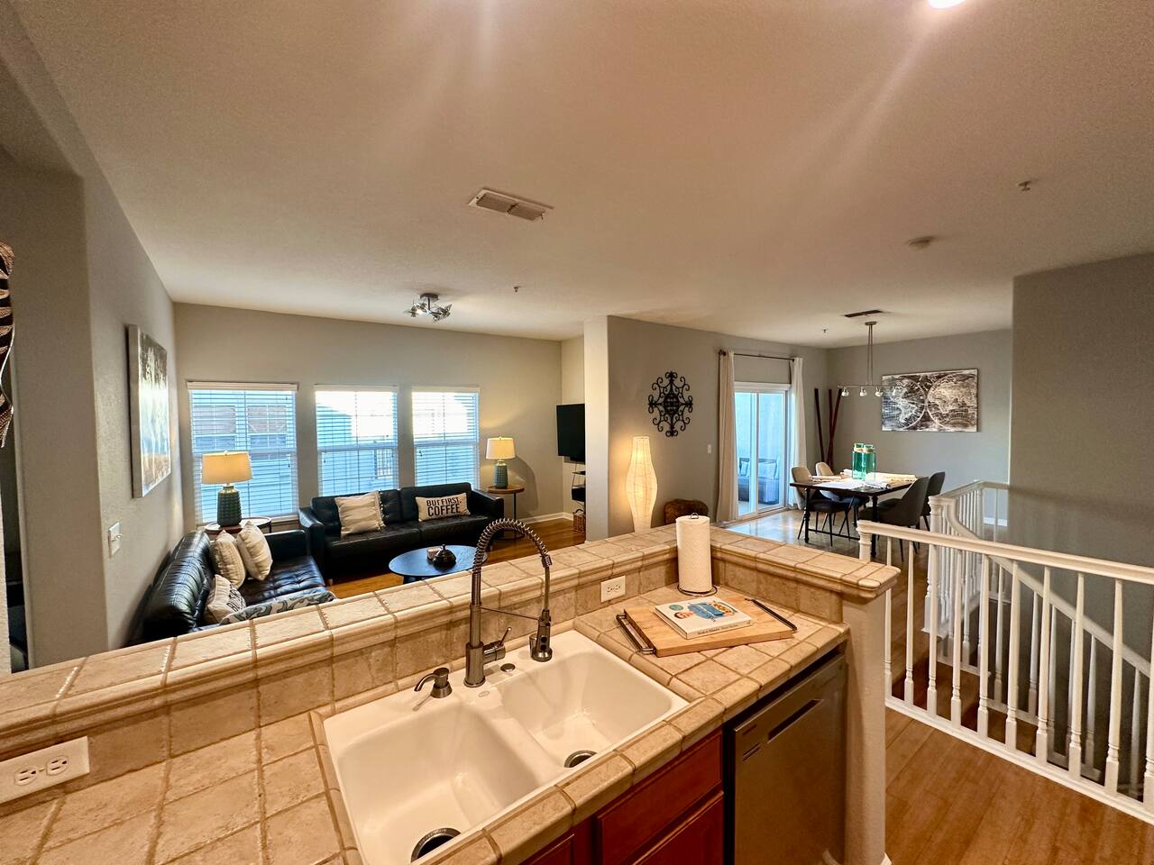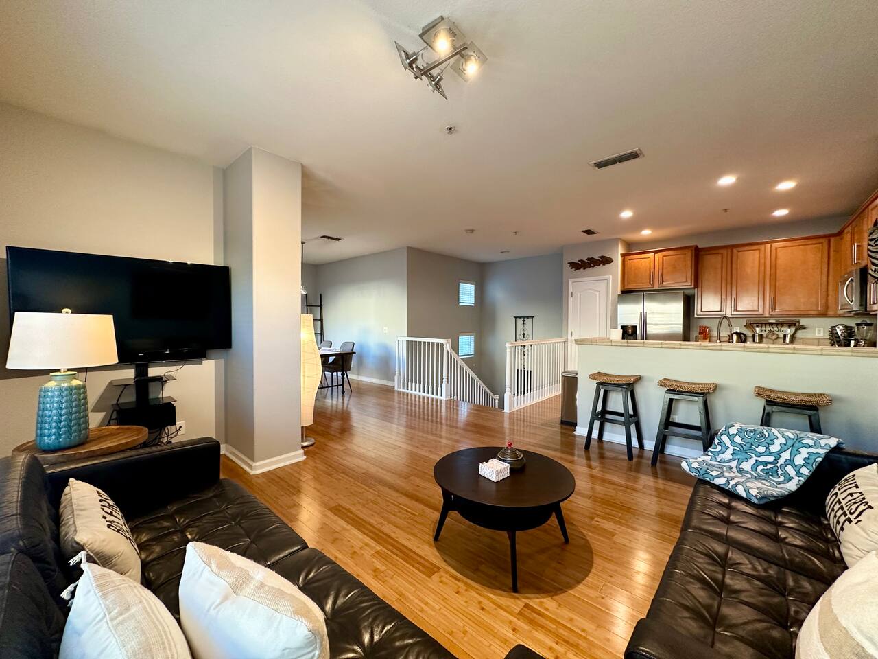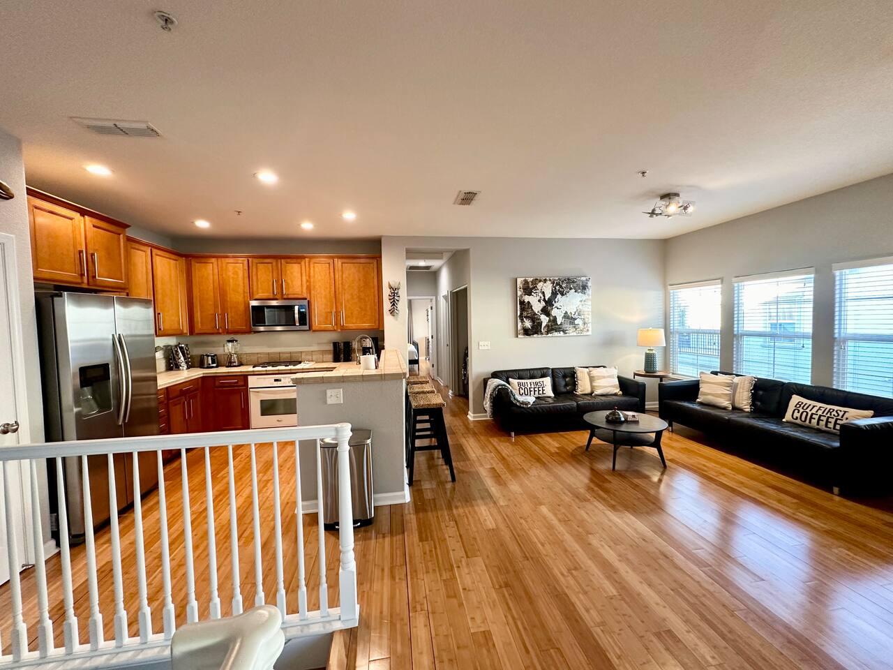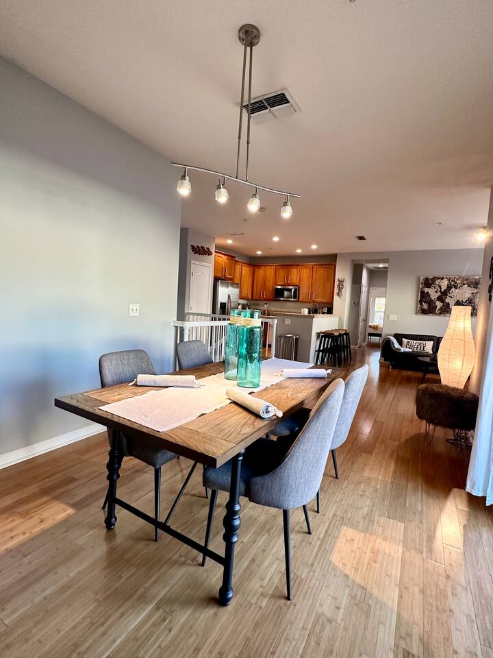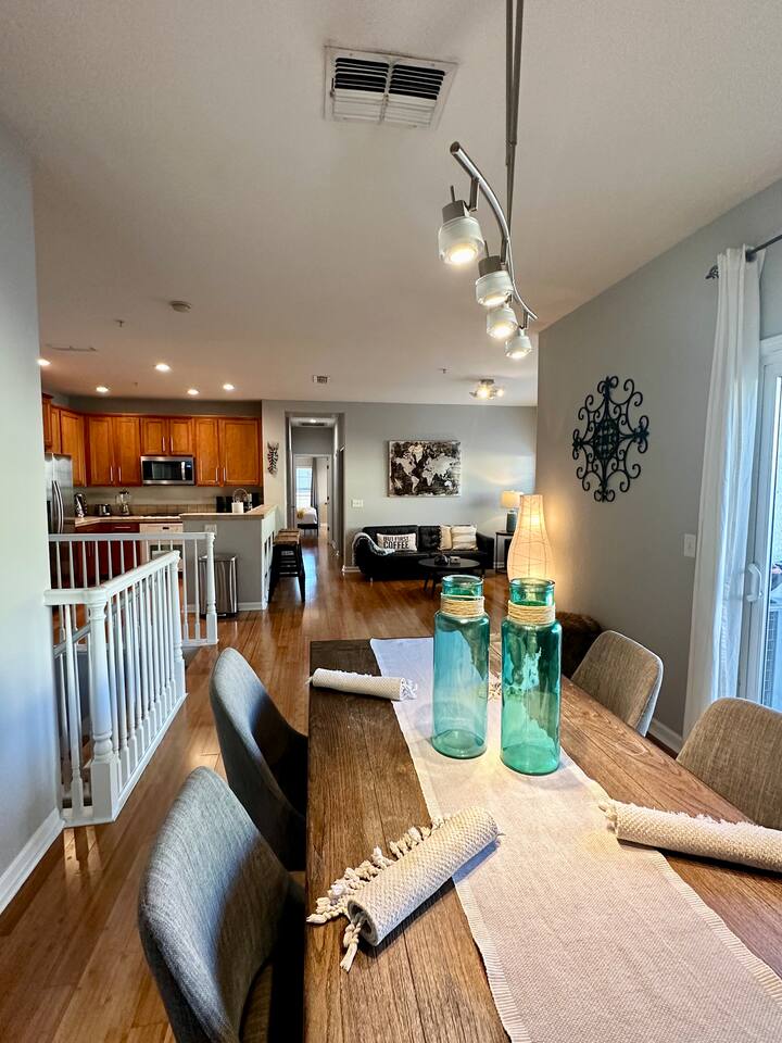 Enjoy your stay at this centrally located Town-House with 2 bedrooms, 2 bathrooms, 2 car garage, Sleeps 6, 1500 SQ/F 2 Story with modern finishes and Incredible amenities, Swimming Pool, Spa, Surrounded by Parks, walking distance to Tennis Courts, Biking trails, Dog Parks and Shopping.