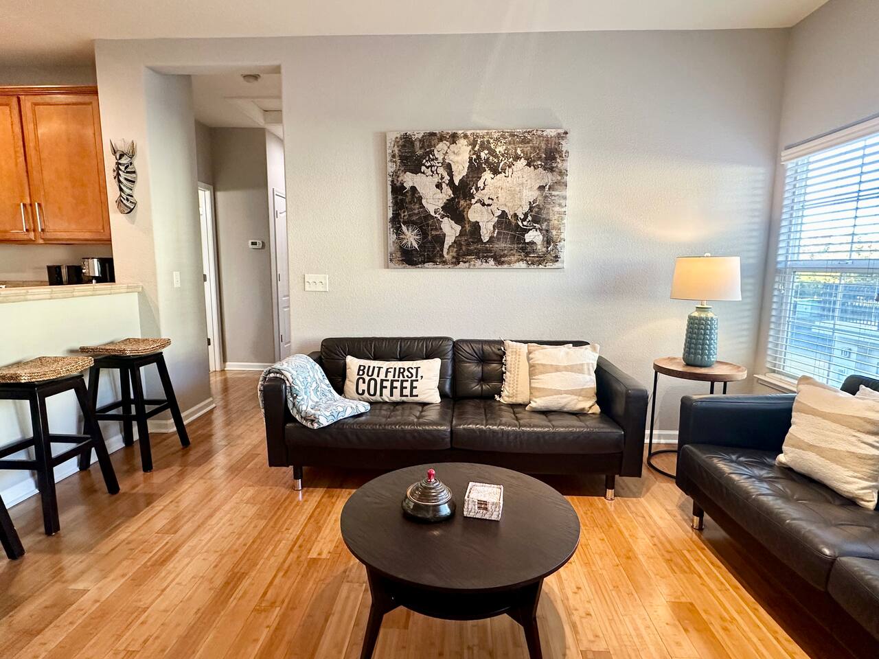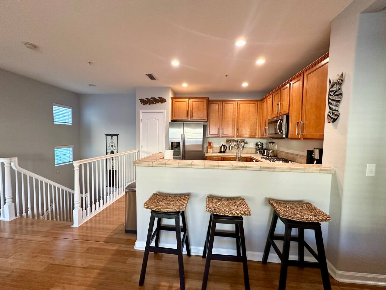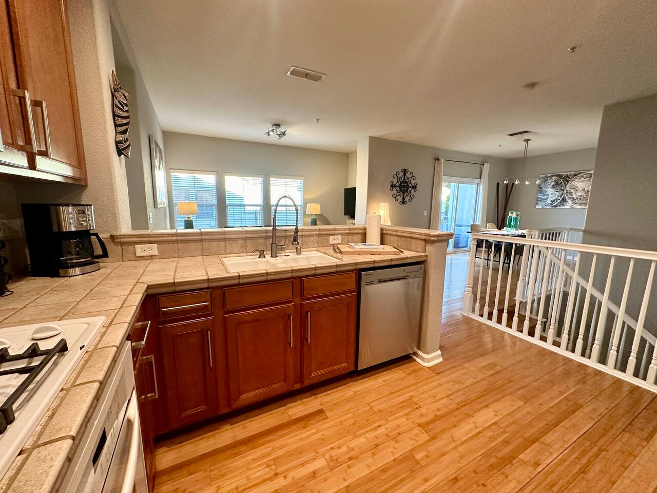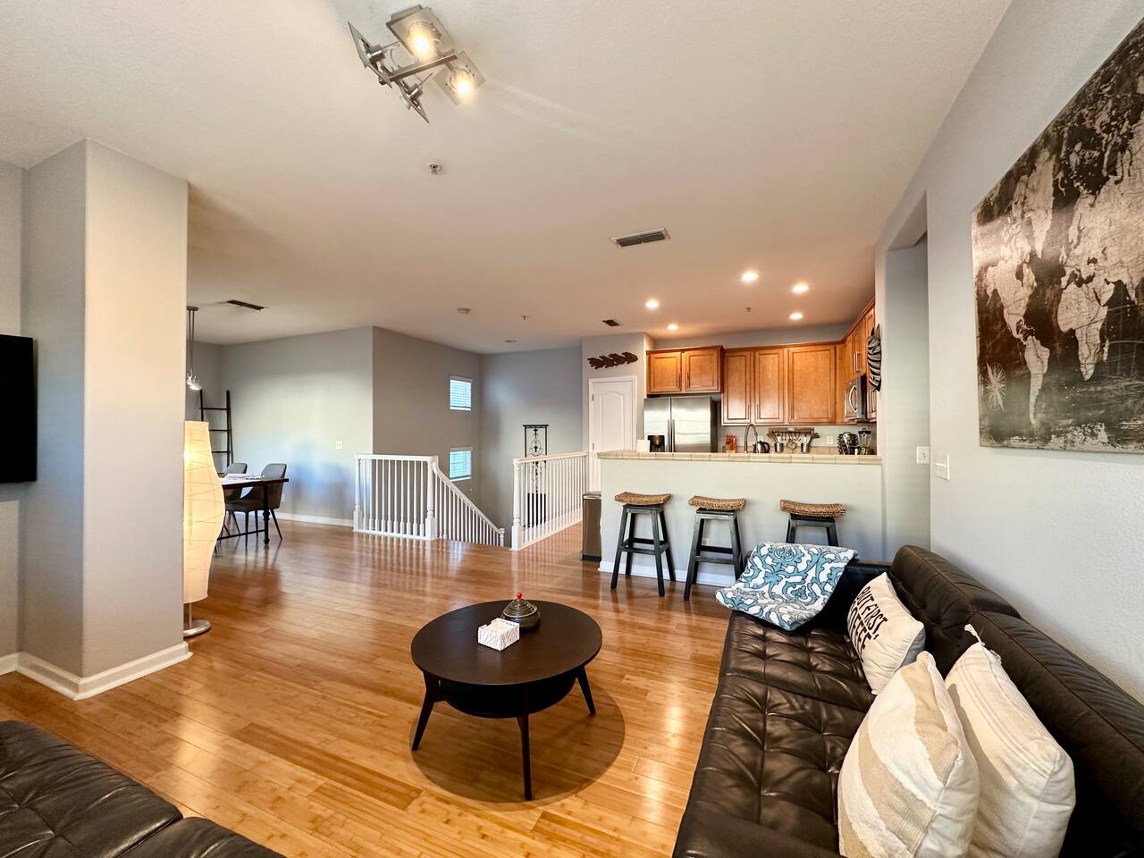 Enjoy your stay at this centrally located Town-House with 2 bedrooms, 2 bathrooms, 2 car garage, Sleeps 6, 1500 SQ/F 2 Story with modern finishes and Incredible amenities, Swimming Pool, Spa, Surrounded by Parks, walking distance to Tennis Courts, Biking trails, Dog Parks and Shopping.