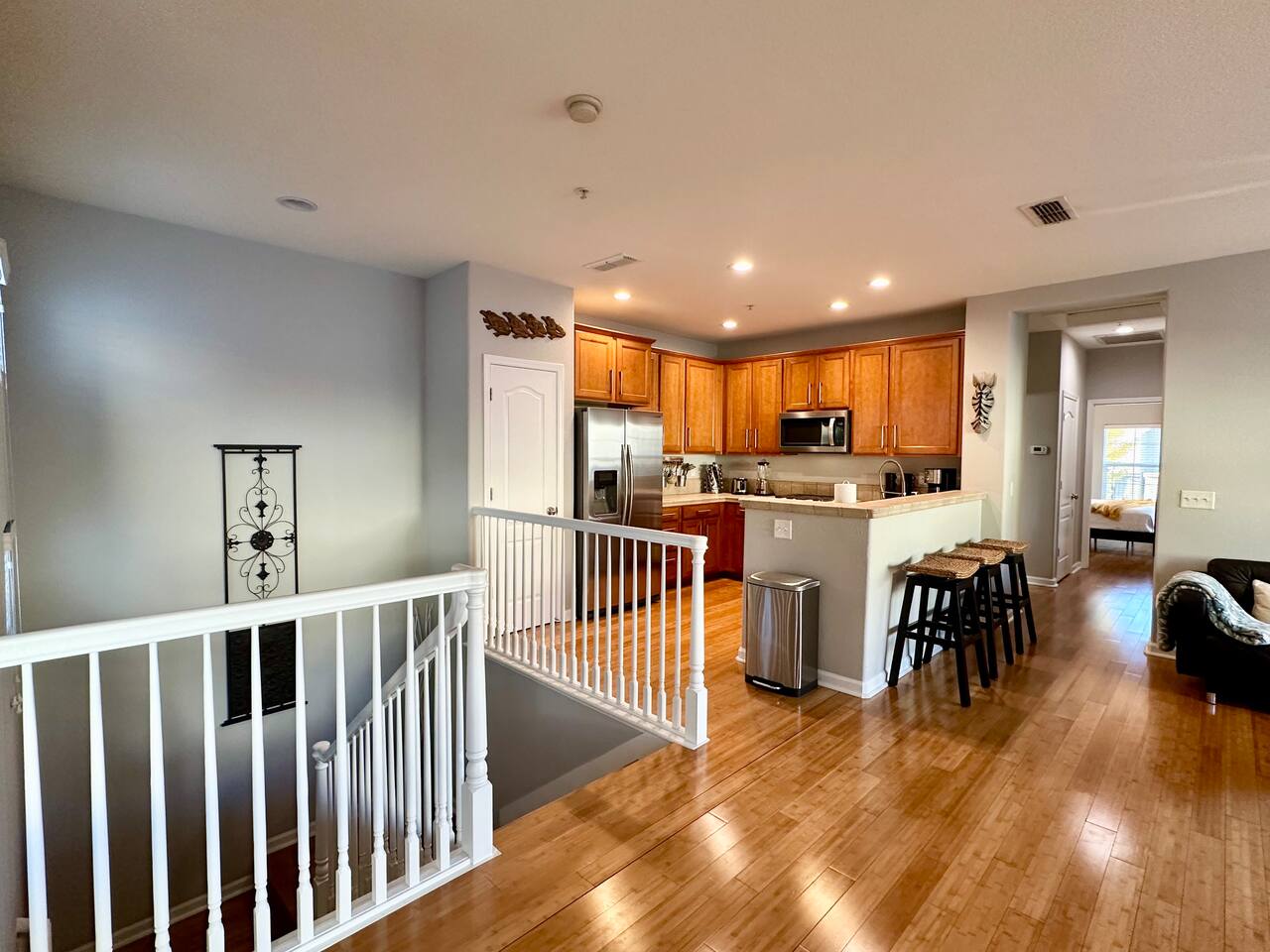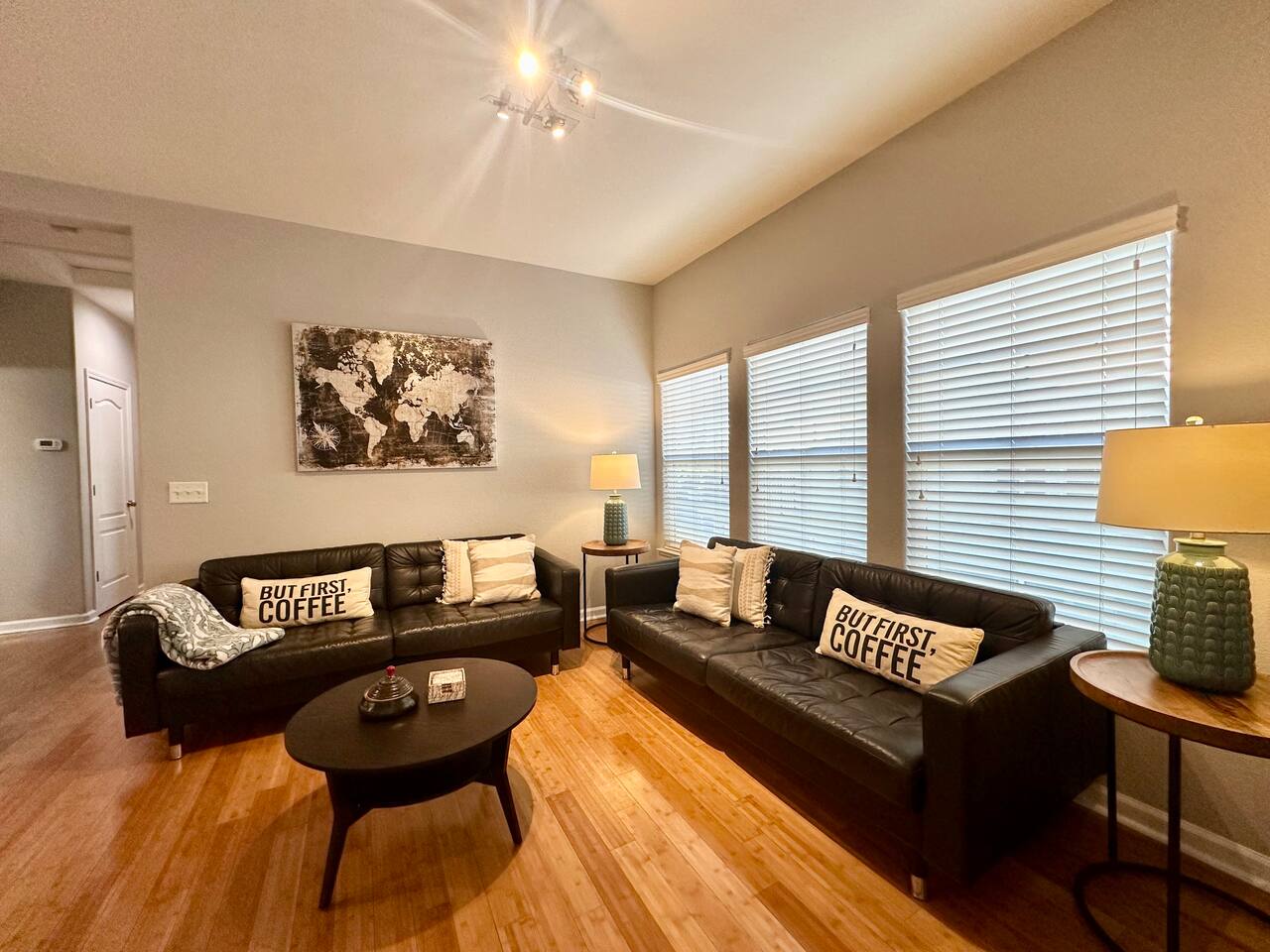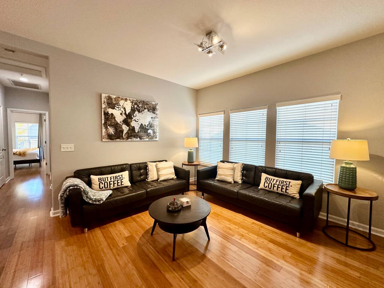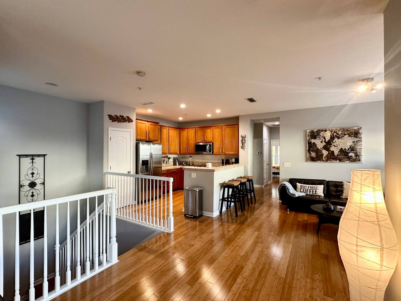 Enjoy your stay at this centrally located Town-House with 2 bedrooms, 2 bathrooms, 2 car garage, Sleeps 6, 1500 SQ/F 2 Story with modern finishes and Incredible amenities, Swimming Pool, Spa, Surrounded by Parks, walking distance to Tennis Courts, Biking trails, Dog Parks and Shopping.