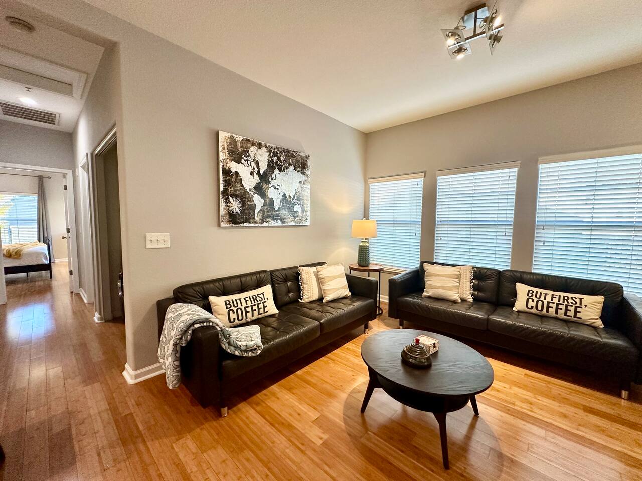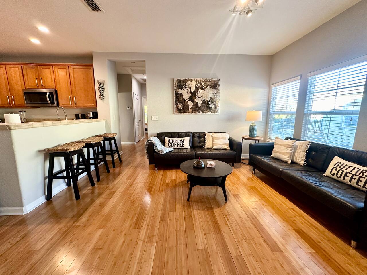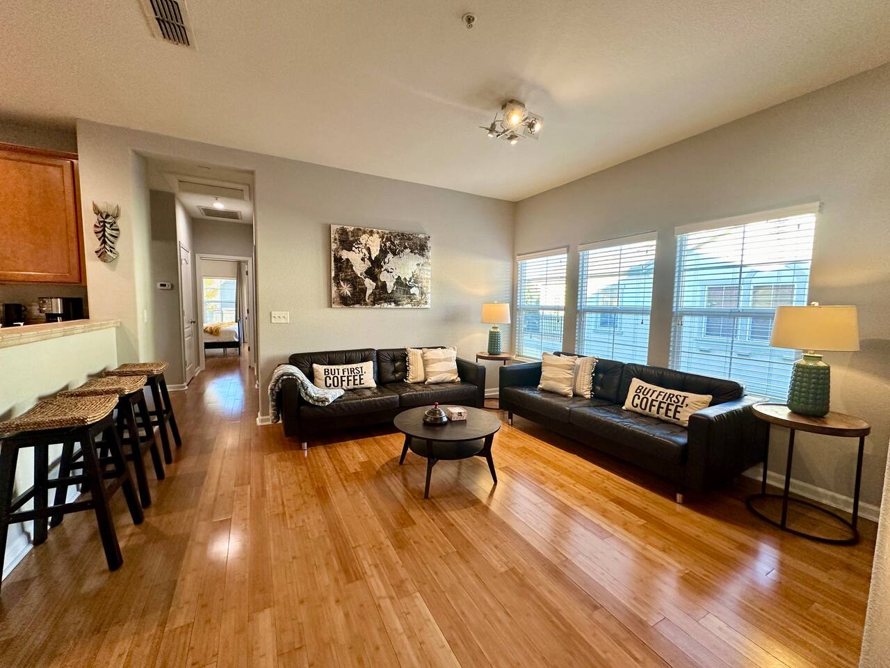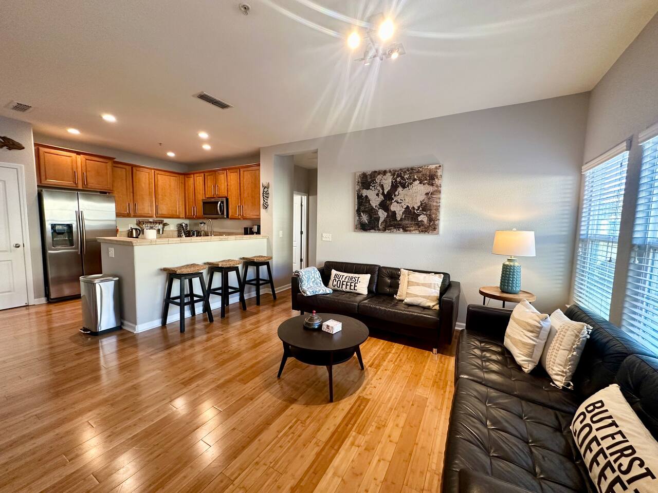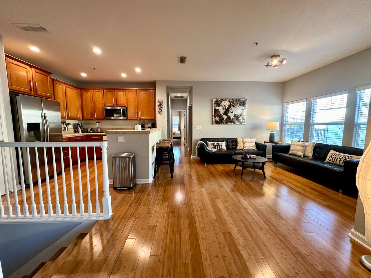 For our guest enjoyment we offer several short or long term luxury properties in the area very similar in size and amenities. Please inquire about other short or long term luxury rental properties in the area. -Please note that this property requires a minimum of 30 days stay to access the pool and Jacuzzi.. Spacious homes, luxurious grounds, and beautiful amenities in a community that's fun and convenient to shopping, entertainment, and fine dining. Incredible Swimming Pool, Jacuzzi open year-round, surrounded by parks, walking distance to Tennis Courts, Biking, Dog Parks and Shopping The 2 story contemporary home futures: - Brand new custom solid bamboo floors throughout the house. - Master bedroom with queen bed, brand new plush pillow top mattress - (Sleeps 2), a Pullout Guest bed with Simmons memory foam mattress (Sleeps 1) and 42'' SMART TV. large walk in closet, private entrance to brand new bathroom with double sinks and over-sized tub - Second bedroom with queen bed, brand new Simmons plush pillow top mattress, large closet and 32'' SMART TV- (Sleeps 2) - Second brand new bathroom with extra deep soaking tub - Contemporary gourmet kitchen, fully stocked and set-up with brand new high end stainless steel appliances, Mediterranean style tops and breakfast bar - Open floor plan Living / Dining area, large brand new leather sofas - (Sleeps 2- on each sofa- non convertible) 60" Flat Screen Plasma SMART HDTV and Surround sound system - Open floor plan dining area with high end custom furnishings (Seating 6) - Two Over-sized Balcony Terraces off the living room and the master bedroom beautifully newly furnished for your morning coffee and evening wine tastings - Separate laundry room with new high end front load Washer and Drier -You can access all amenities at the second floor - Attached Garage for 2 cars - Guest parking