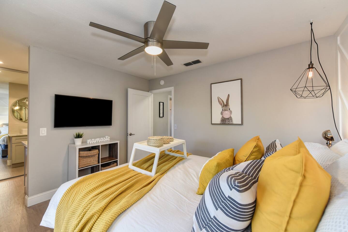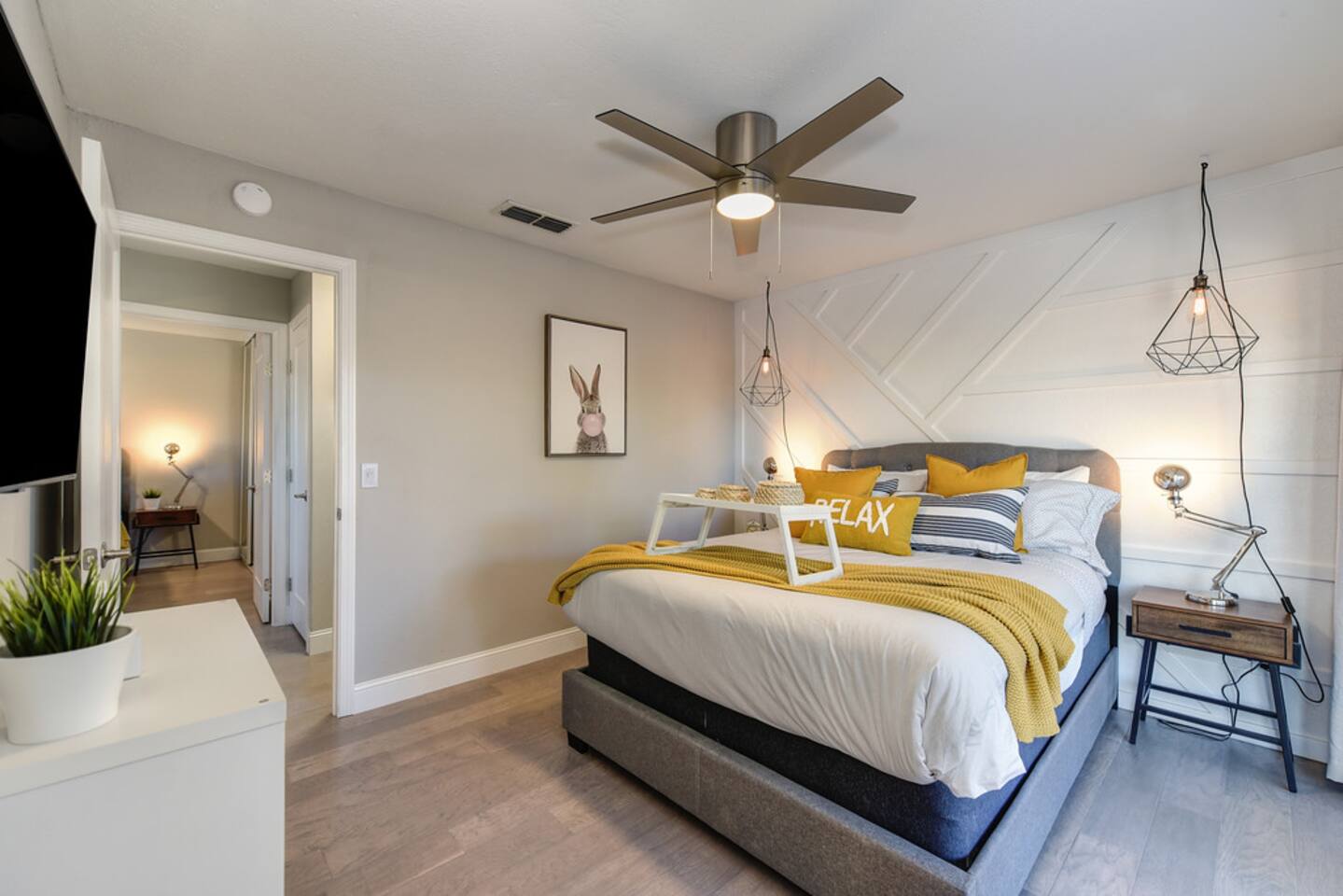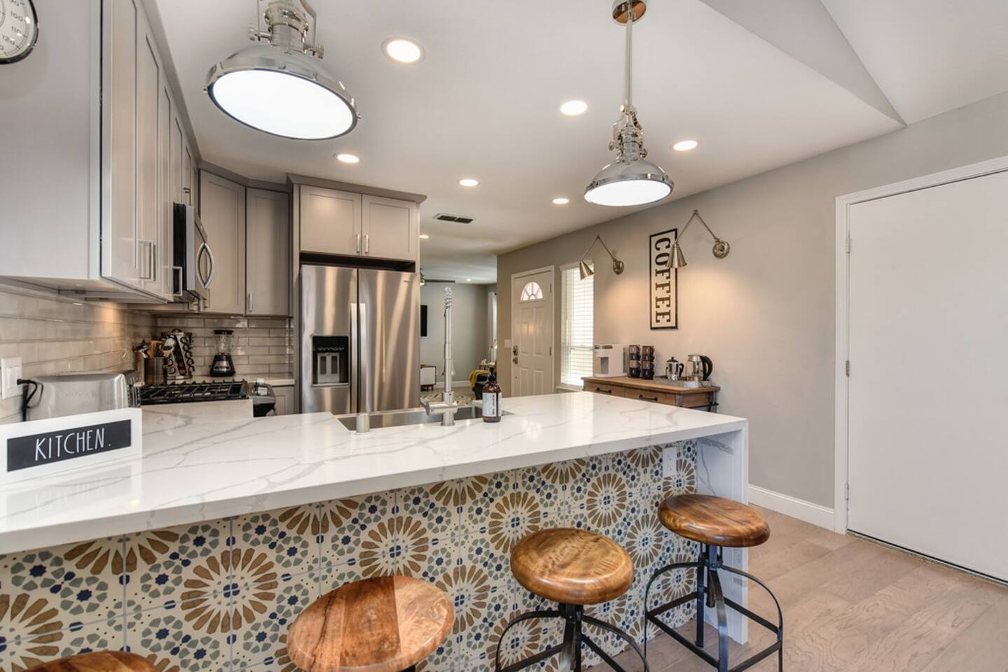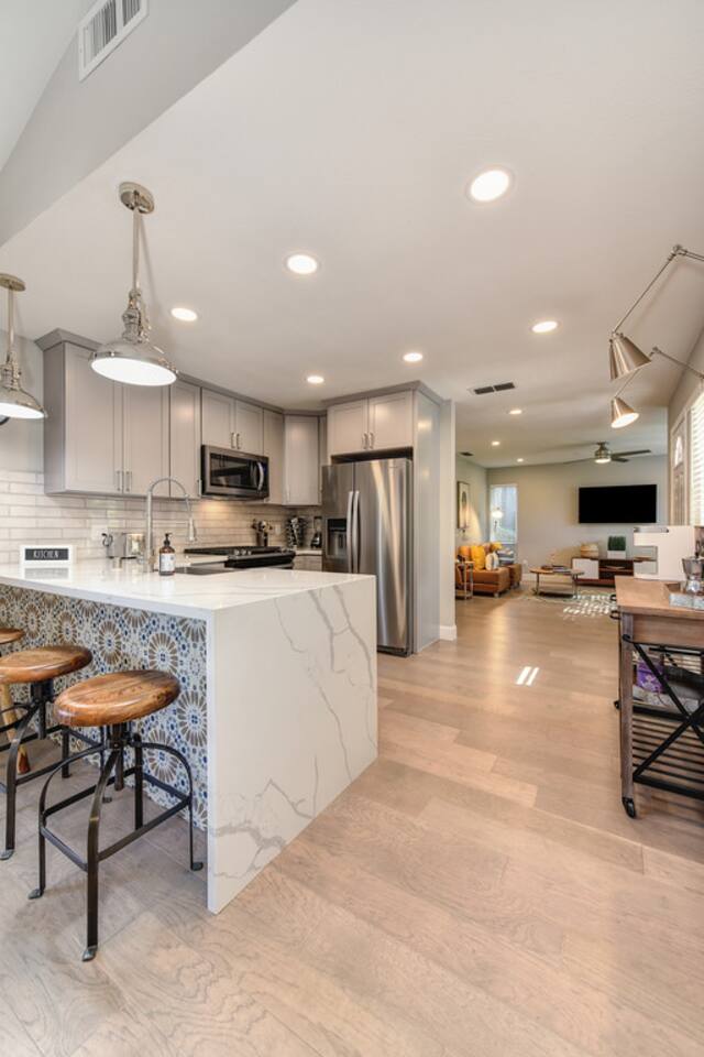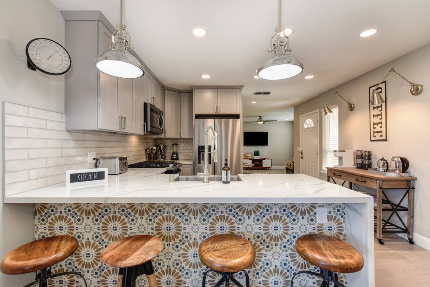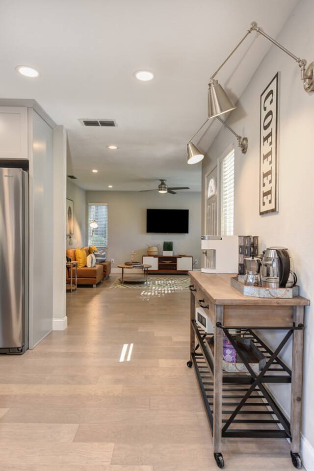 A spacious home and luxurious grounds in a community that's fun and convenient to shopping, entertainment, and fine dining. The single story luxury home futures: - Brand new custom wood floors throughout the house. - Master bedroom with queen bed, brand new luxury Simmons Plush Beautyrest mattress - (Sleeps2) 42" SMART TV, large closet - Brand new master bathroom with custom tile throughout and custom walk-in shower, custom vanity and a toilet area - Second bedroom with queen bed, brand new luxury Simmons Plush Beautyrest mattress - (Sleeps2) 32" SMART TV and a closet - Brand new second bathroom with custom tile, soaking tub, custom vanity and a toilet area. - Third bedroom with queen bed, brand new Simmons Plush Beautyrest mattress - (Sleeps 2) 32" SMART TV and a large closet - Contemporary gourmet kitchen, fully stocked and set-up with brand new high end stainless steel appliances, quartz counter tops, farmhouse sink, custom backsplash and a Coffee Bar - A spacious dining area with high end furnishings and a sofa/futon (sleeps 1) - Open concept floor plan Living area with large brand new leather queen pullout sofa - (Sleeps 2), two single foldout chair/beds (sleeps 1 each) and a 55" SMART TV - Spacious office area with and office desk, bookcase and a chair -Stunning back yard with amazing POOL AREA (NOT HEATED) and a separate large seating area with a barbecue. -Gorgeous gazebo with additional seating area and pool lounge chairs - High end front loader Washer and Drier in the attached Garage for 2 cars with private driveway and plenty of street parking. *NOTE. We take great pleasure in regularly updating and enhancing our property. This includes incorporating new decorations, throw pillows and blankets, furniture, and bedding, and refreshing the color scheme. Consequently, the current setup may not exactly match the images featured in the listing. However, we guarantee that all necessary amenities are provided to ensure your stay is enjoyable and comfortable.