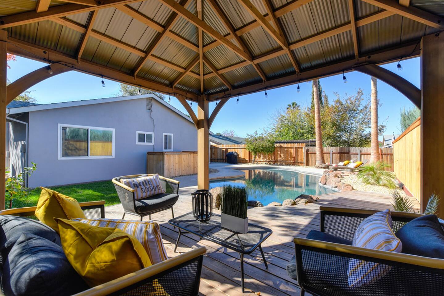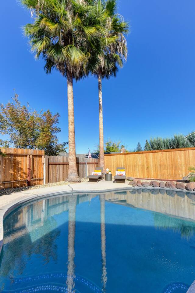 The Gorgeous PALM HOUSE is a MasterPeace of design and luxury. The stunning single family home invites comfort and exudes modern elegance. With 3 bedrooms, 2 bathrooms, amazing outdoor area, sparkling POOL, generous living space & stylish finishes, you will enjoy a perfect setting for relaxing and entertaining. Only 10 min from Roseville TOP restaurants, shopping. the Galleria & short 15 min drive to downtown Sacramento