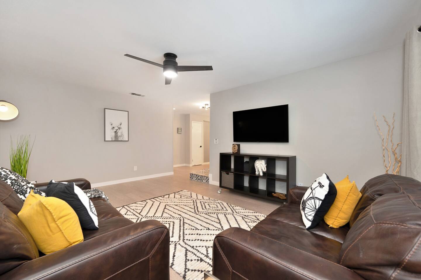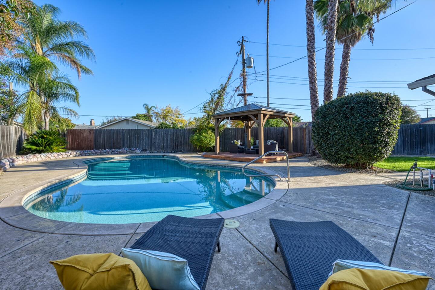 *Please note of the sleeping arrangement: King bed in the master bedroom 3 Queen beds in the 3 additional bedrooms, two large non convertible sofas in the den, two large non convertible sofas in the living room, single foldout guest bed available to place anywhere in the house , located in the master bedroom closet *Special giveaway! If there's a ripe lemons available, feel free to gather them for some refreshing juice. Enjoy this extra zest during your stay! REVIEWS: ⭐ "Great home. Pool was nice. Great Communication." ⭐ "Teya's place was perfect for our group, with plenty of space. The pool was perfect for the 90-degree weather. The house was clean." 🌟 Why You’ll Love It: ✅ Perfect for Families – Space for Everyone! ✅ Beautiful Outdoor Area – Poolside Relaxation & Fun ✅ Open Layout – Bright, Airy & Inviting *NOTE. We take great pleasure in regularly updating and enhancing our property. This includes incorporating new decorations, throw pillows and blankets, furniture, and bedding, and refreshing the color scheme. Consequently, the current setup may not exactly match the images featured in the listing. However, we guarantee that all necessary amenities are provided to ensure your stay is enjoyable and comfortable.